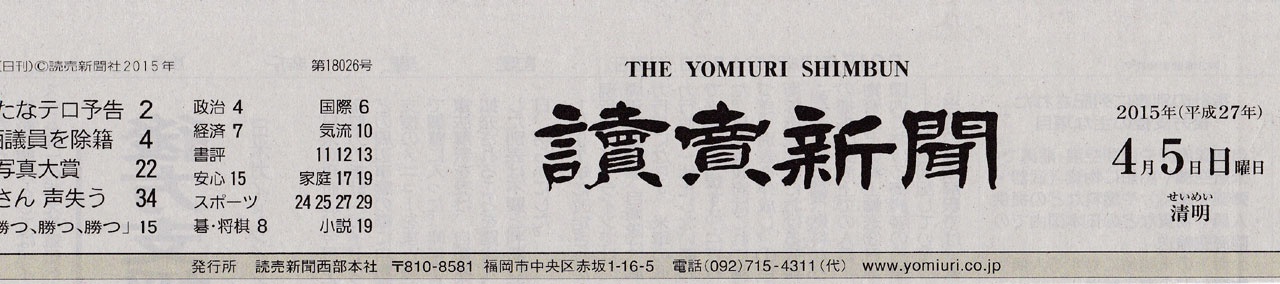 2015年04月05日(日) インフォメーション 読売新聞朝刊で、お店の紹介記事掲載がありました。 読売新聞朝刊で、お店の紹介記事掲載がありました。 2015年4月5日(日)読売新聞朝刊にて、お店の紹介記事の掲載がありました。
