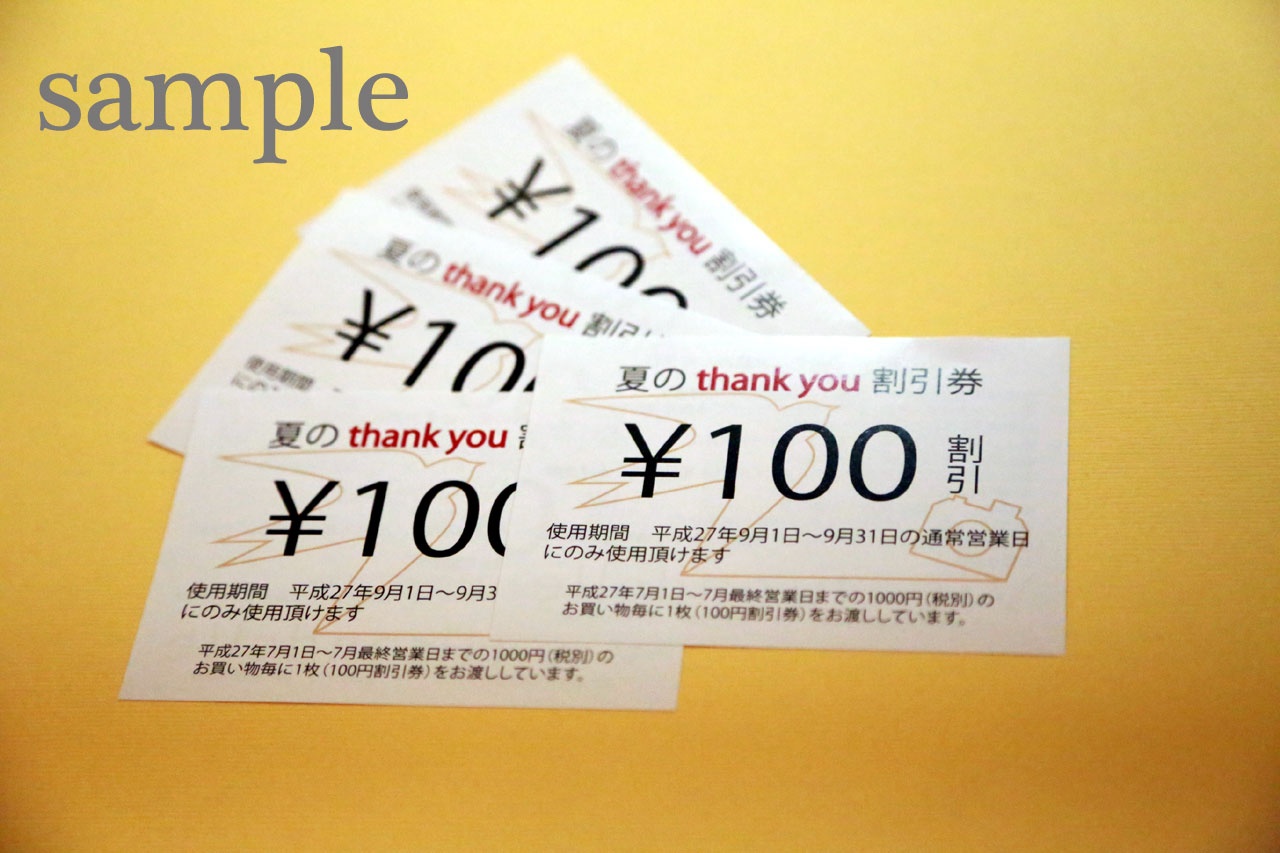 *100円割引券がご使用できる期間は、平成27年9月1日~9月末までの通常営業日となります。