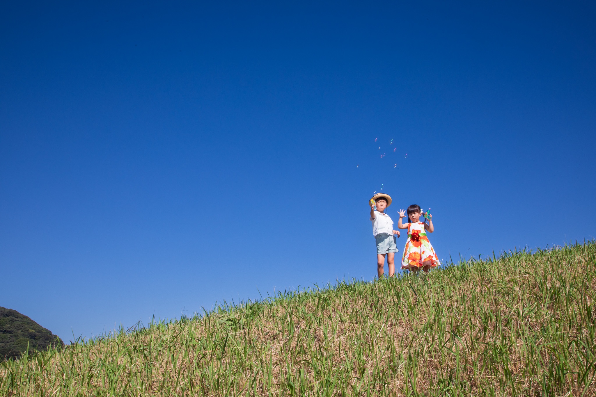 2022年10月07日(金) フォトギャラリー < フォトスタジオ < サービス案内 Family Photo's 雲ひとつ無い晴天に恵まれた日にロケーション撮影をさせていただきました。 これが秋の空か? と、疑いたくなる程の晴天! 暑かったー