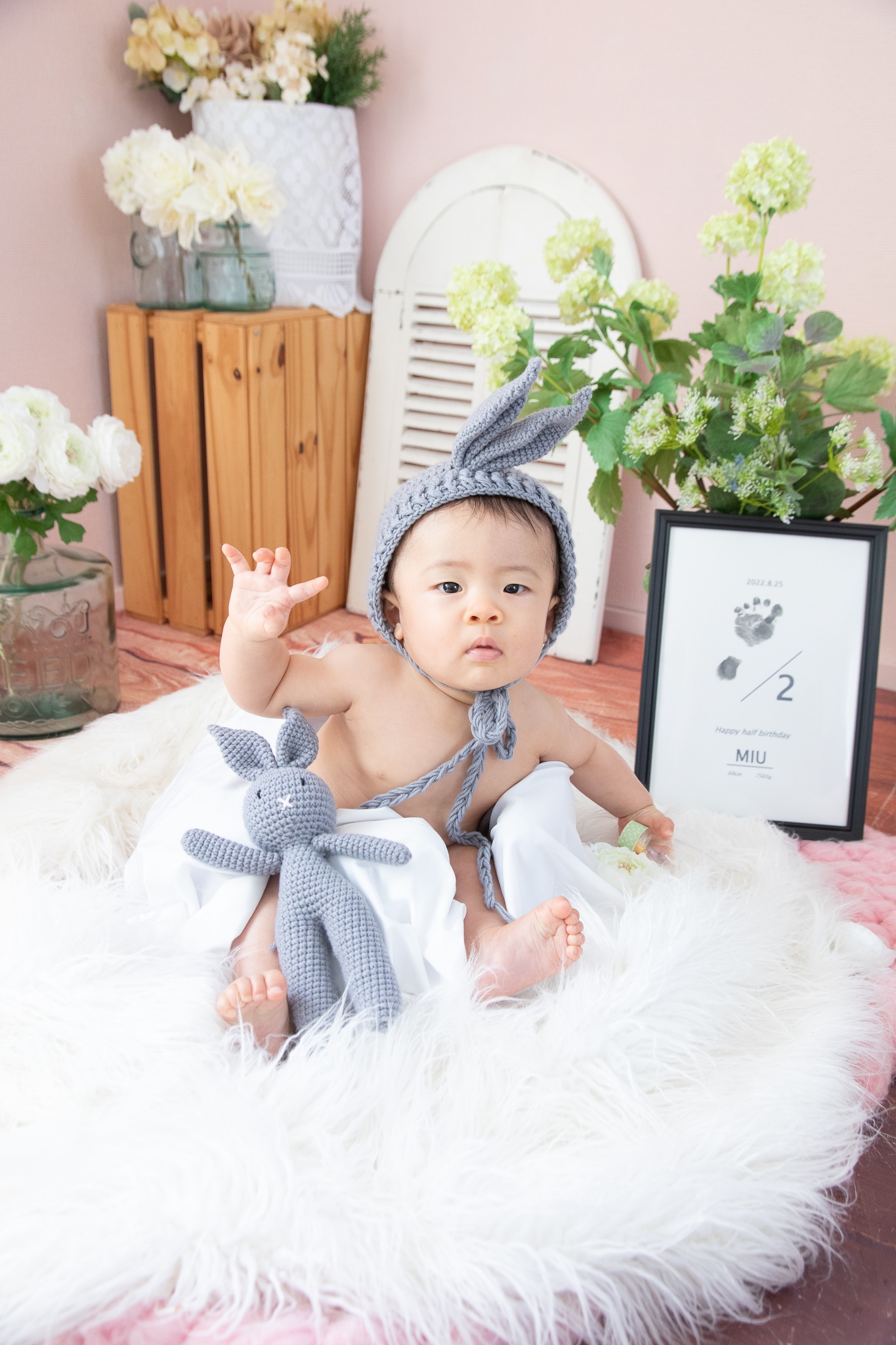 2022年10月08日(土) フォトギャラリー < フォトスタジオ < サービス案内 ハーフバースディ MちゃんがハーフBD撮影に来てくれました。 前回のお宮参り撮影から、できることが増えてニコニコ笑顔がとっても上手でした。 1歳までの成長は本当に速いです。 とっても可愛いこの時期の記念日を逃さず撮影にお越しくださいね。 マタニティから1歳までをお撮りするプランもご用意しています。