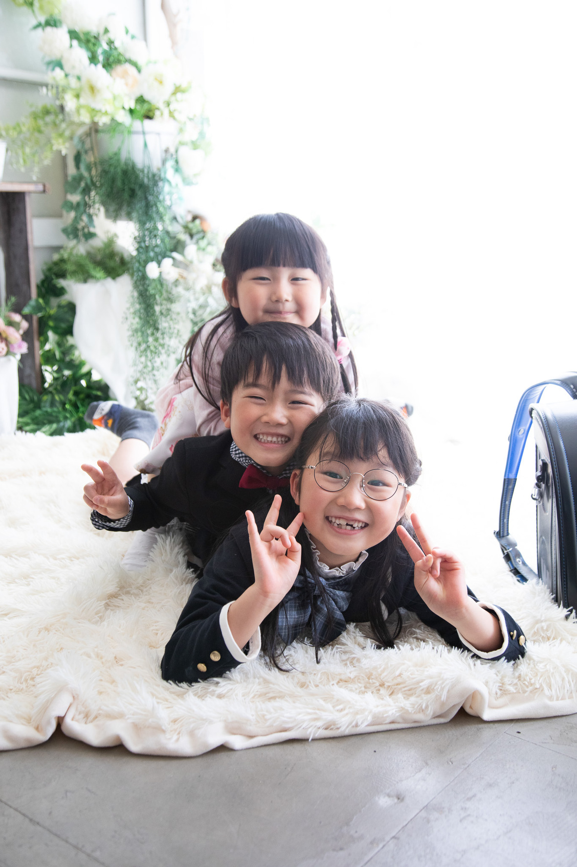 2023年04月22日(土) フォトギャラリー < フォトスタジオ < サービス案内 卒園入学おめでとう 幼稚園の卒園証書や作品とランドセルを持って、K Familyが来てくれましたー いつも家族の記念日には欠かさず撮影に来てくれるK Family 今回は家族の「うさぎくん」も一緒に来てくれましたよ きょうだいの多いご家族は、なかなか全員が揃った写真が少ない事と思います。 小さな子供たちを連れての外出も大変かと思いますが、子供たちのためにも記念日には是非スタジオへお出かけくださいねっ