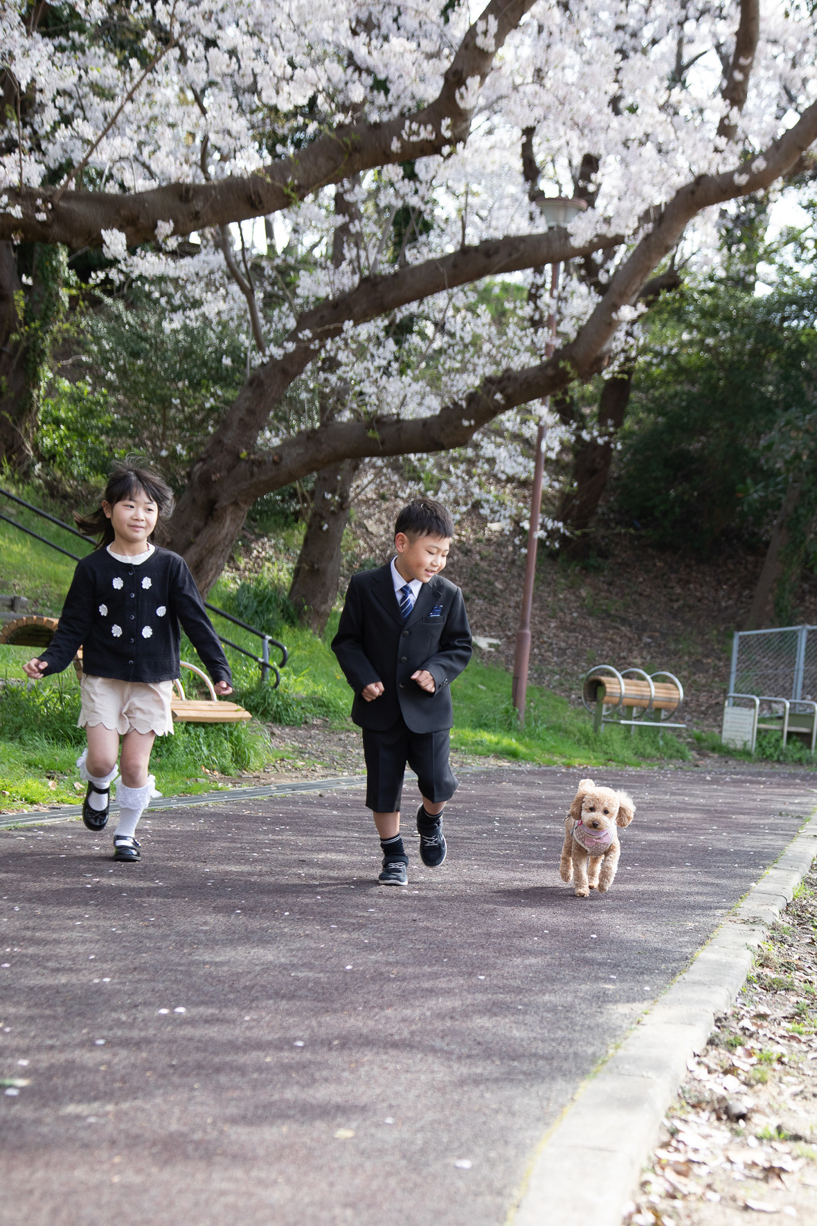 2023年05月13日(土) フォトギャラリー < フォトスタジオ < サービス案内 卒園・入学おめでとー 卒園・入学記念をスタジオで撮影した後、門司区萩ヶ丘公園で桜ロケーション撮影をさせていただきました。 ずらり公園に並ぶ桜を背景に「マリオジャンプ」を何度も披露してくれました。 公園では家族のワンコさんも合流してニコニコ笑顔を撮らせていただきました♡