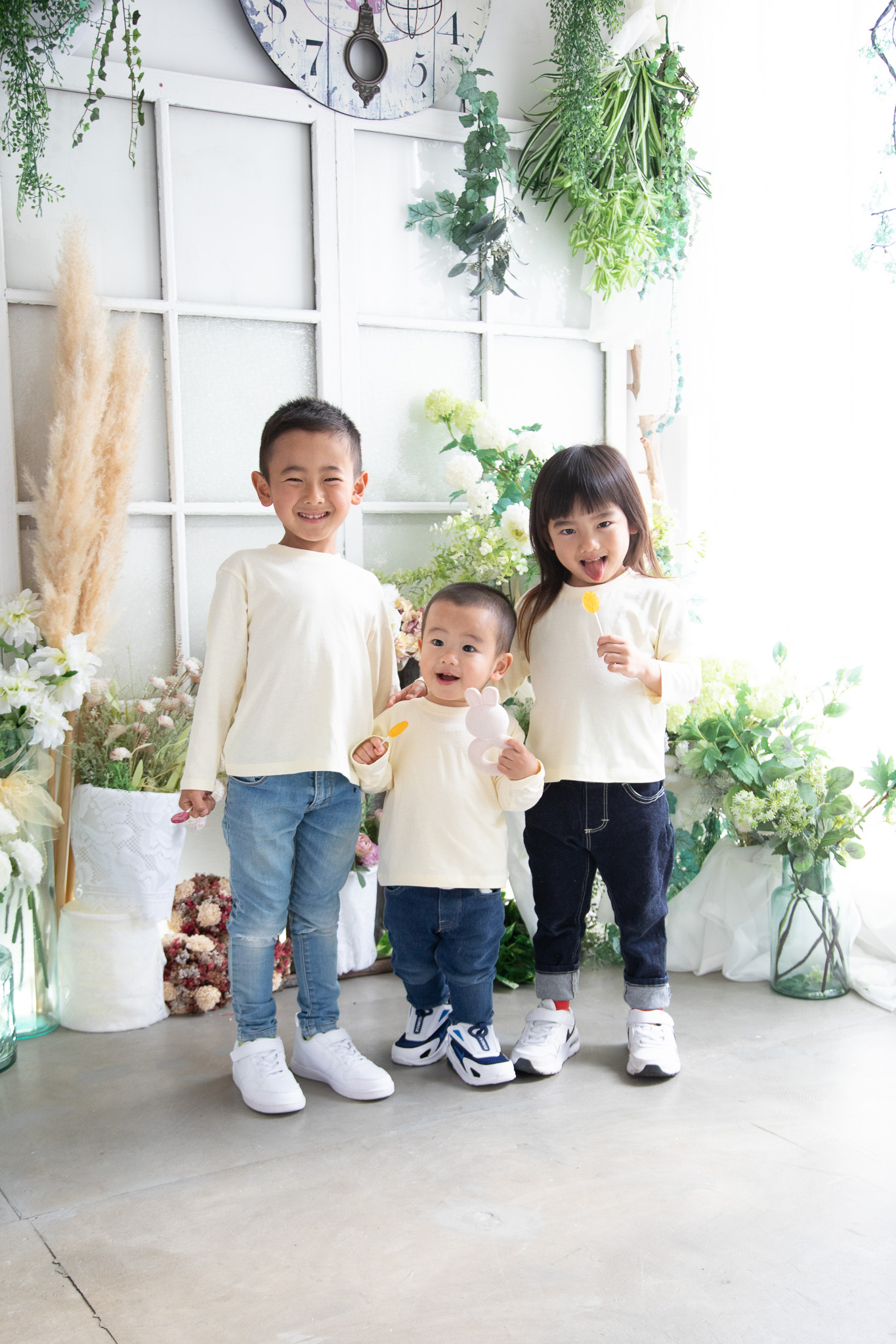 2023年05月23日(火) フォトギャラリー < フォトスタジオ < サービス案内 卒園&入学おめでとう 卒園証書とランドセルを持ってビシッと決まった新一年生さんがスタジオに来てくれました。 弟くんが元気いっぱいで、なかなか3人きょうだいの写真を撮らせてくれなかったけど 「このままの姿を撮ってくれたら良いから!」 と、パパママから応援していただき沢山撮影させていただきました。 元気いっぱいの3人に再会できる日を楽しみにしてまーす また来てねー