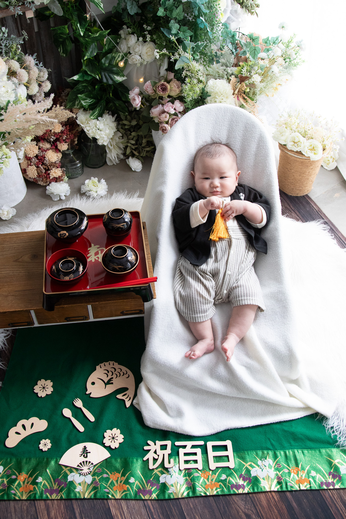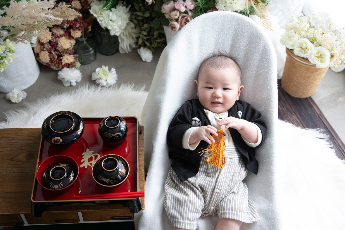 2024年02月09日(金) フォトギャラリー < フォトスタジオ < サービス案内 百日おめでとう! 昨年末、岡田宮さまで初宮参りロケーション撮影。 今回はスタジオで百日撮影をさせていただきました。 百日はどの子もニコニコさんで機嫌が良い♡ とってもスムーズな撮影でした。 次回はハーフBDですねっ 再会を楽しみにしてます
