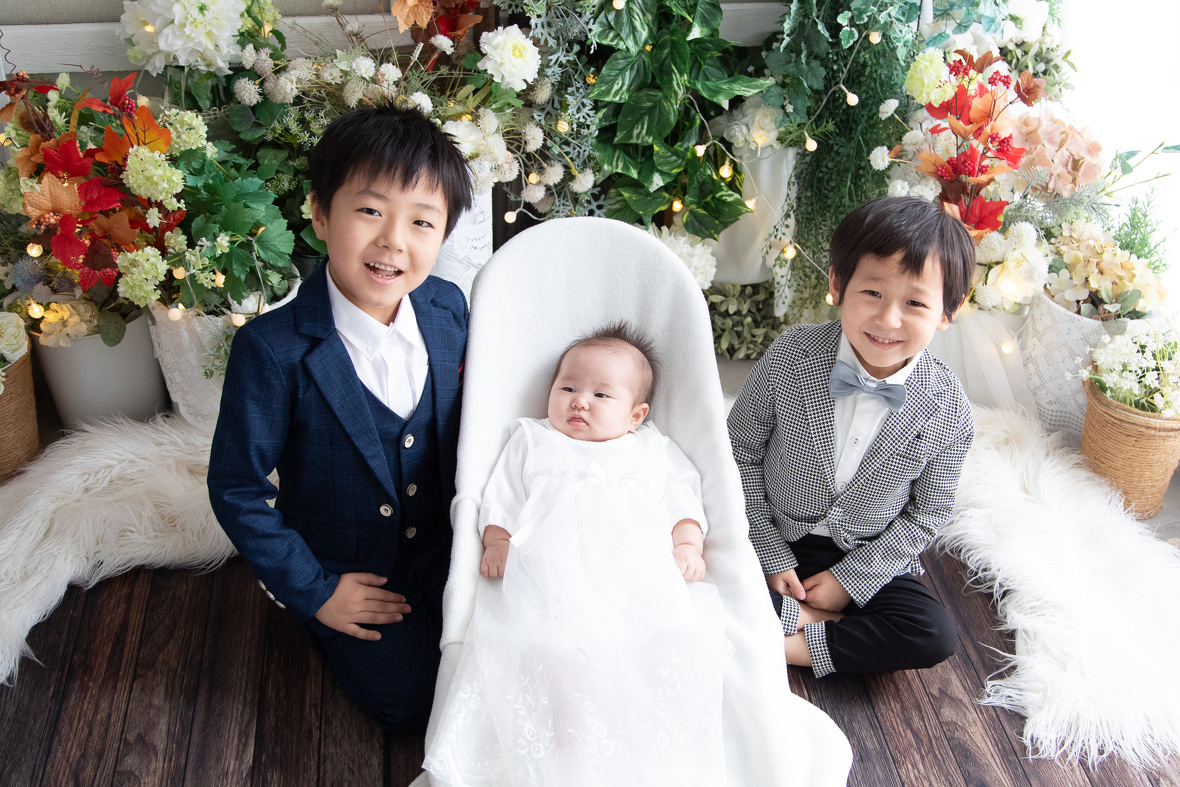2024年10月11日(金) フォトギャラリー < フォトスタジオ < サービス案内 初宮参り&百日 ご自宅でニューボーン撮影をさせていただいたA Family様♡ 今回はスタジオで初宮参り&お食い初めの撮影をさせていただきました。 きょうだい撮影に手間取り(笑 Kさん途中で寝てしまいました zzz 可愛い、可愛いKさん。 次回は兄さんたちの七五三でお会いしましょう