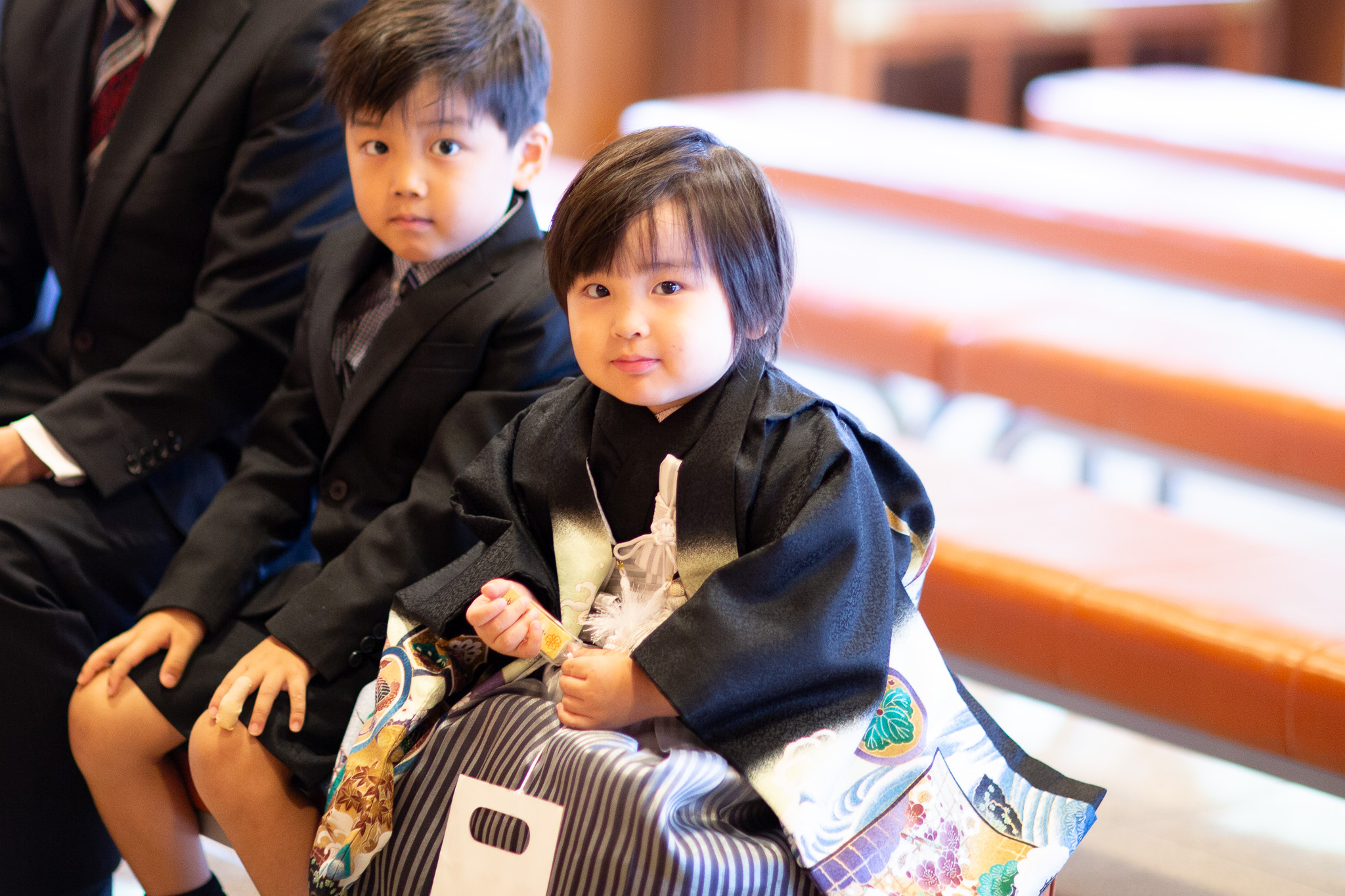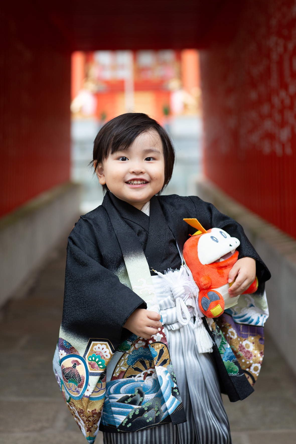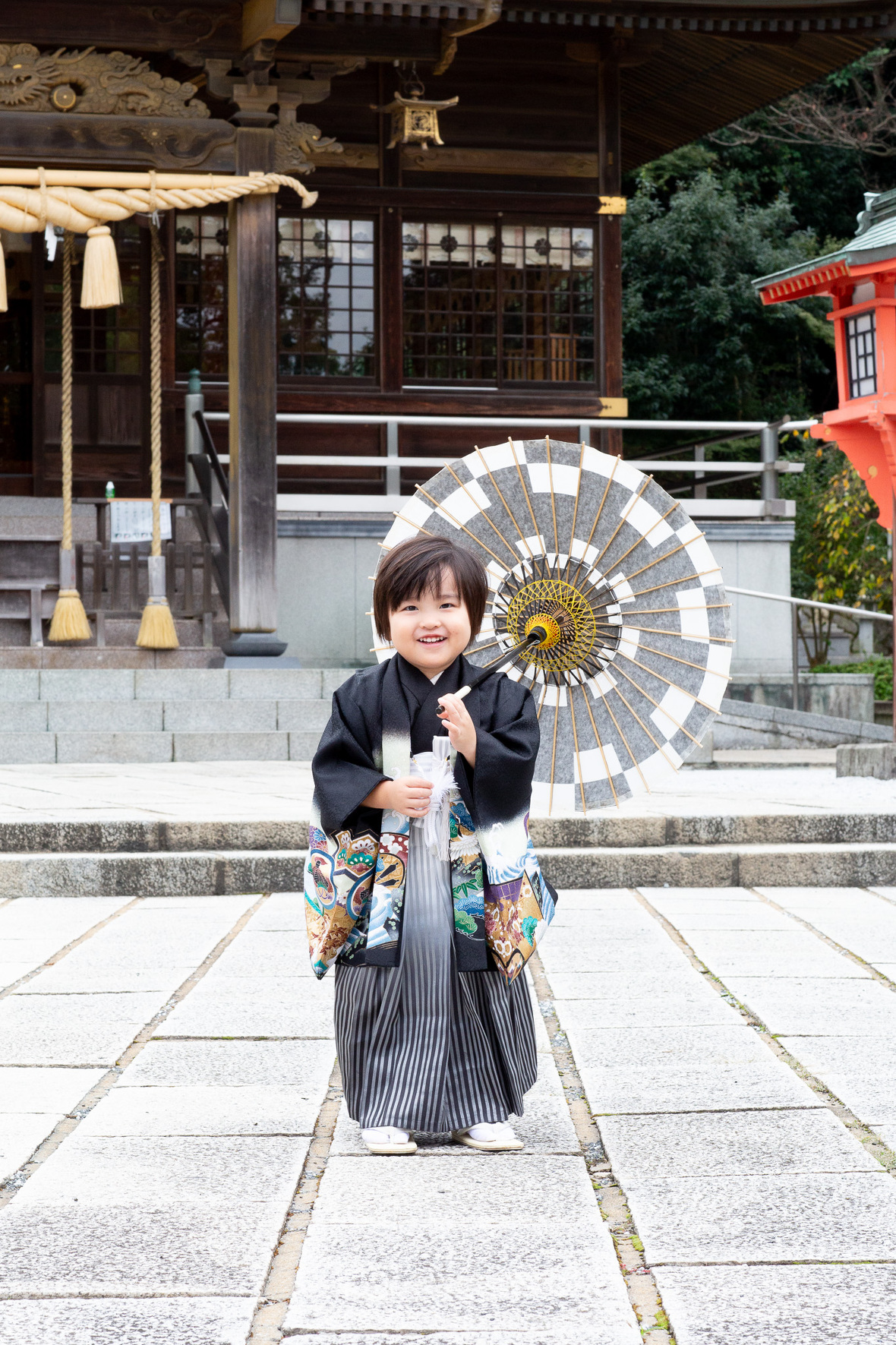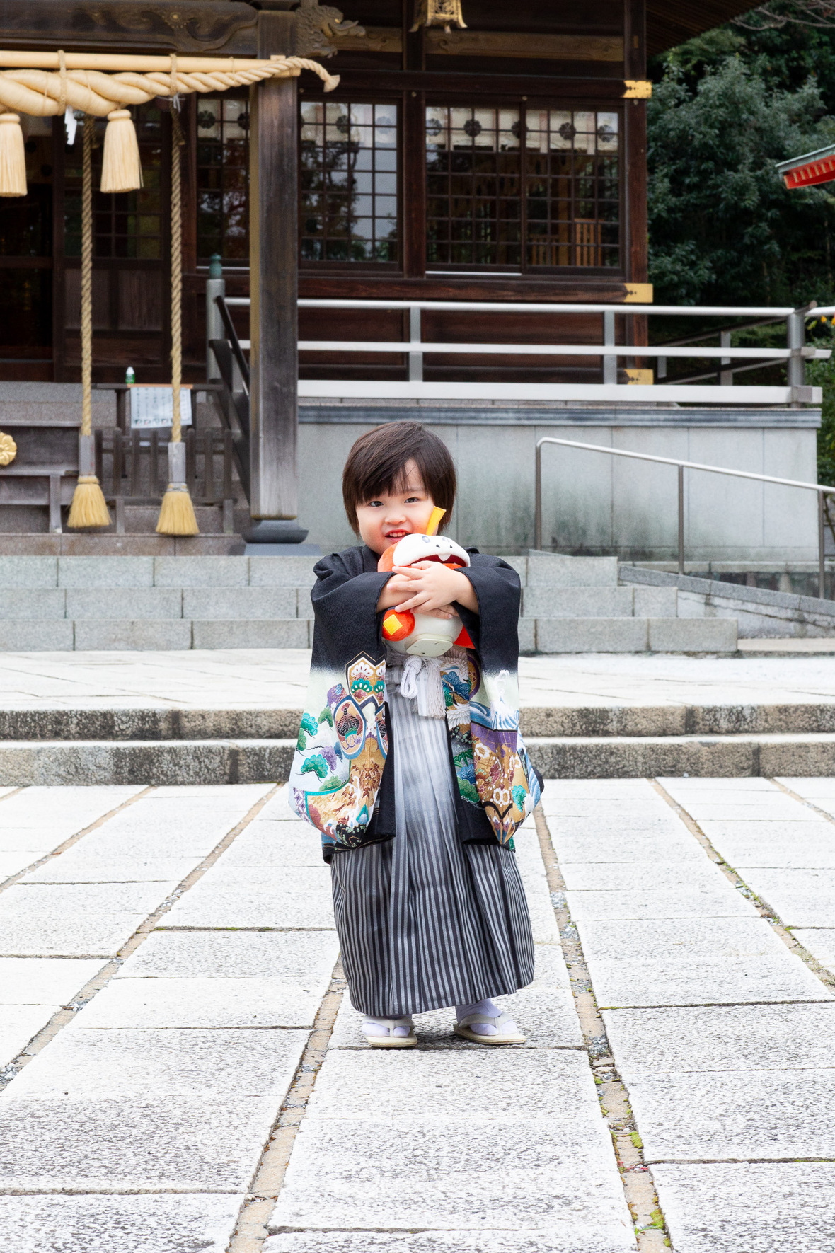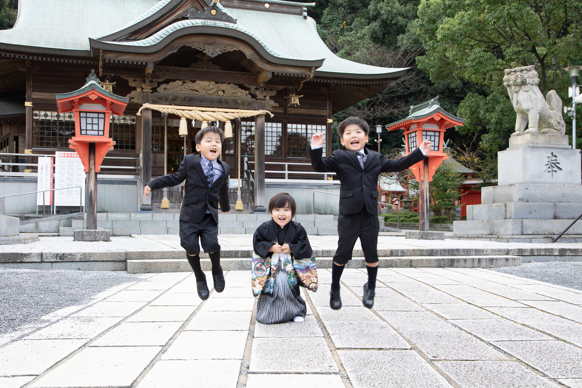 2025年10月07日(火) フォトギャラリー < フォトスタジオ < サービス案内 3歳七五三おめでとう! 戸上神社 ~令和六年(昨年)に撮影しましたお客様のご紹介です~ 昨年の秋 三歳の七五三詣を、門司区戸上神社様でロケーション撮影させていただきました。 お気に入りのぬいぐるみは、しゃべるんです(笑 もちろん一緒に撮影させていただきました〜 撮影最後はいつもの「大きくジャーンプ!!」 戸上神社様に見守られながら、すくすくグングン大きくなぁれ 七五三おめでとう! 戸上神社様には、銀杏・もみじと秋の紅葉がそろった、とっても素敵な神社。 祈願中の撮影も許可いただいてます。
