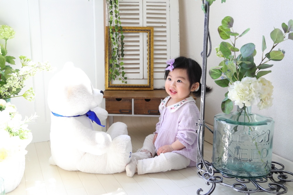 2019年04月23日(火) フォトギャラリー < フォトスタジオ < サービス案内 Mちゃん1歳のお誕生日 Mちゃん、1歳のお誕生日記念撮影に来てくれました〜 ちょっとだけご機嫌斜めさんでしたが、お着替え2回!頑張りました。 (お姉ちゃんが1歳の時に着て撮った同じ衣装でも撮ったんですよ) 最後は、泣き伏せるシーンもありましたが・・・ 可愛すぎて、泣き顔もしっかり写真に収めさせて頂きました。 Mちゃんまたネッ -- くまちゃんの帽子は、Mちゃんが赤ちゃんの時の帽子です。
